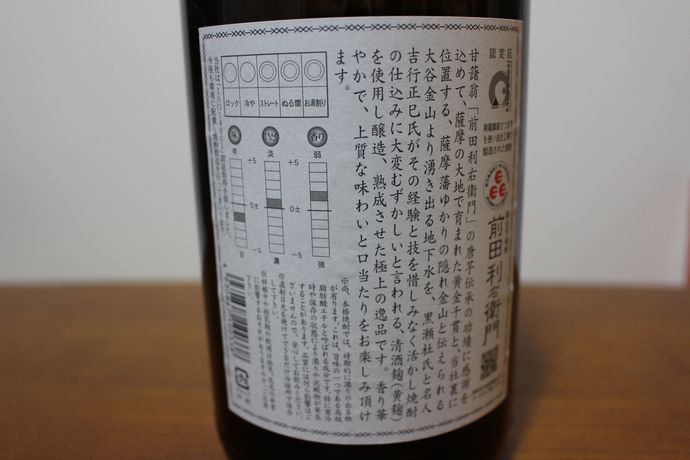 前田利右衛門は、というより指宿酒造さんの焼酎は一升瓶の裏のラベルにおすすめの飲み方が表記されています。