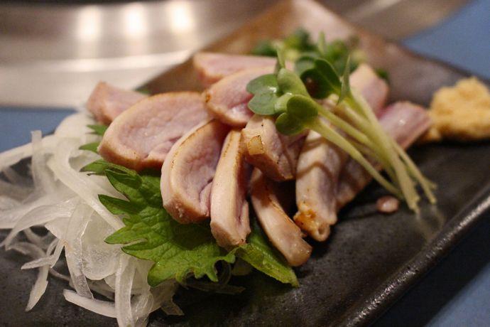 3~4年以上寝かせた黒麹仕込みの黒糖焼酎。通常、白麹による製造が多い中、黒麹を使うことでコクを強調しつつ、長期熟成による味わいが素晴らしい。初めはロックでいき、水割りも楽しみましたが、お湯が一番香りも甘みも華やぎ、料理も包み込んでくれました。私見としては、間違いなくお湯がおすすめの一品ですね。実際、この場では一番飲んだ焼酎です(^^)/